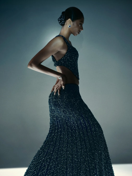"Rohit Gandhi + Rahul Khanna is a clothing brand from India, founded in 1997. They specialize in contemporary clothing for both men and women. The craftsmanship pays great emphasis on silhouettes and detailing. We draw inspiration from linear structures, geometrical lines and are greatly influenced by modern contemporary art. We draw inspiration from unique architectural forms, synonymous with metallic tones amalgamated with modern edgy elements. Our signature surface ornamentation, metallic embroideries, subtle muted hues and reticulated structures together create a perfect combination of mystery and glamour"