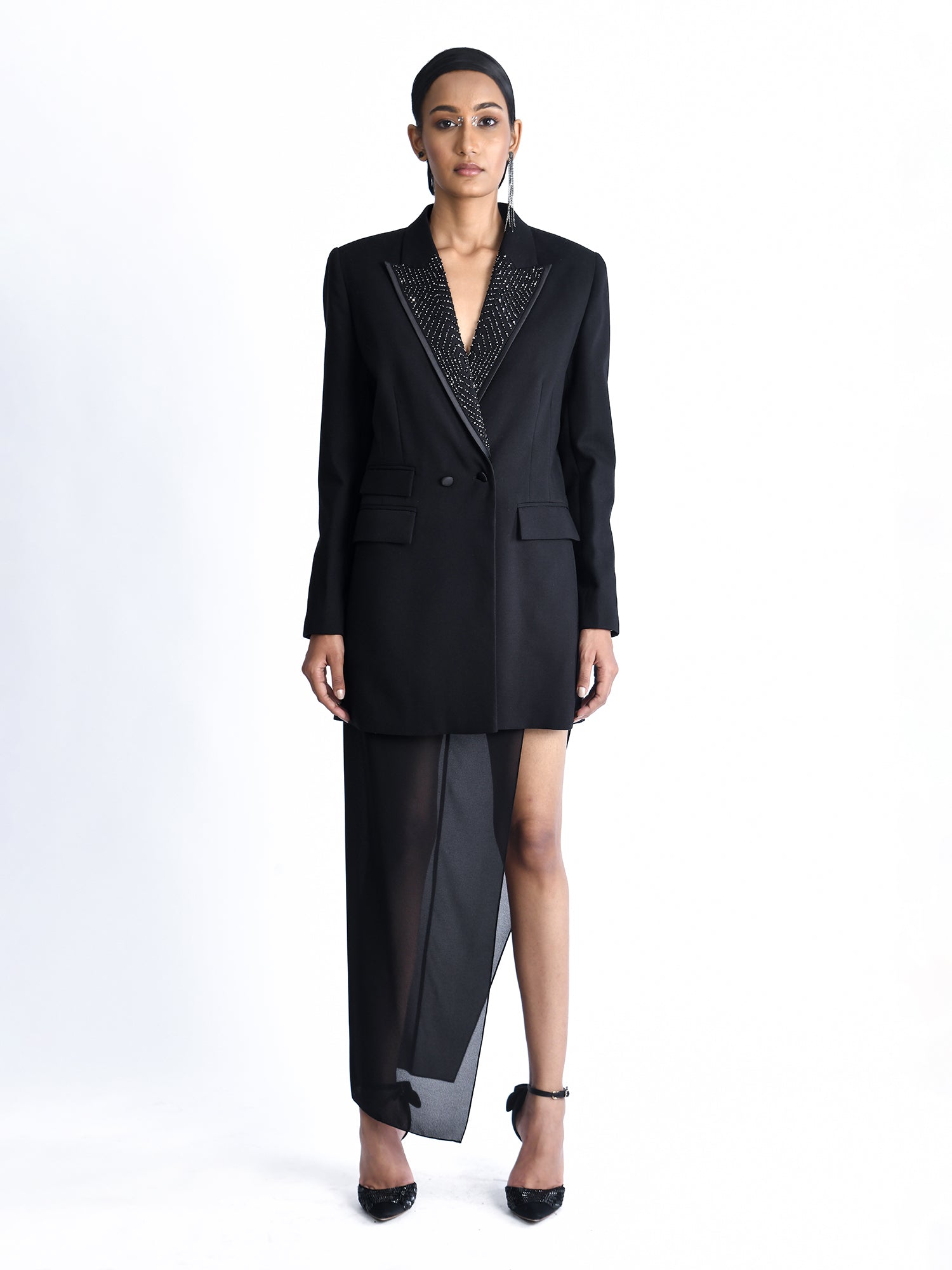 Double Breasted Jacket with Embroidered Lapel