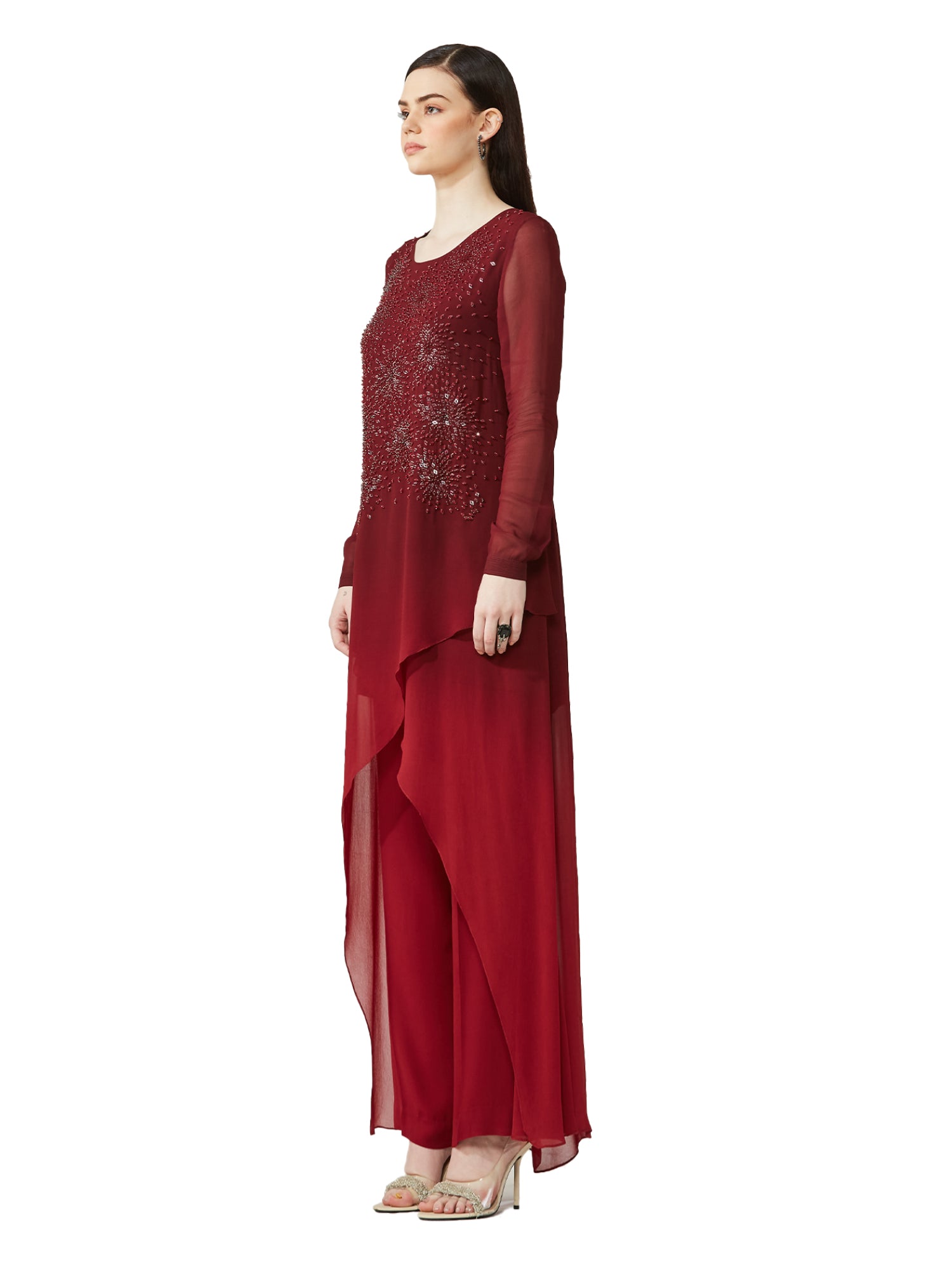 Embroidery Details: Supernova Artwork Embellished With Tonal Sequins , Metallic Nalki And Crystal Beads