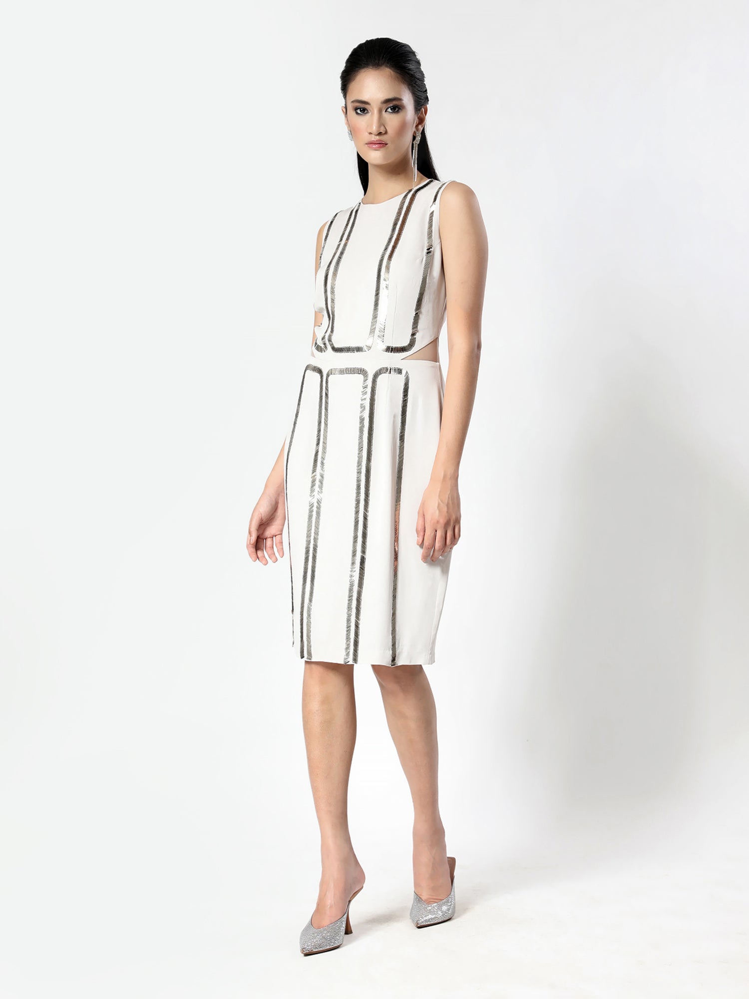 Silver White Embellished Short Dress