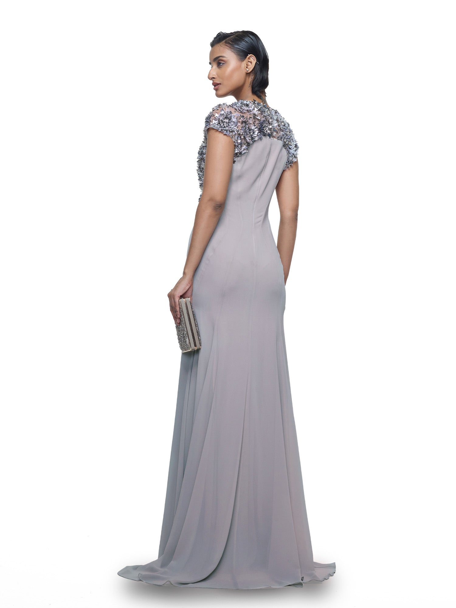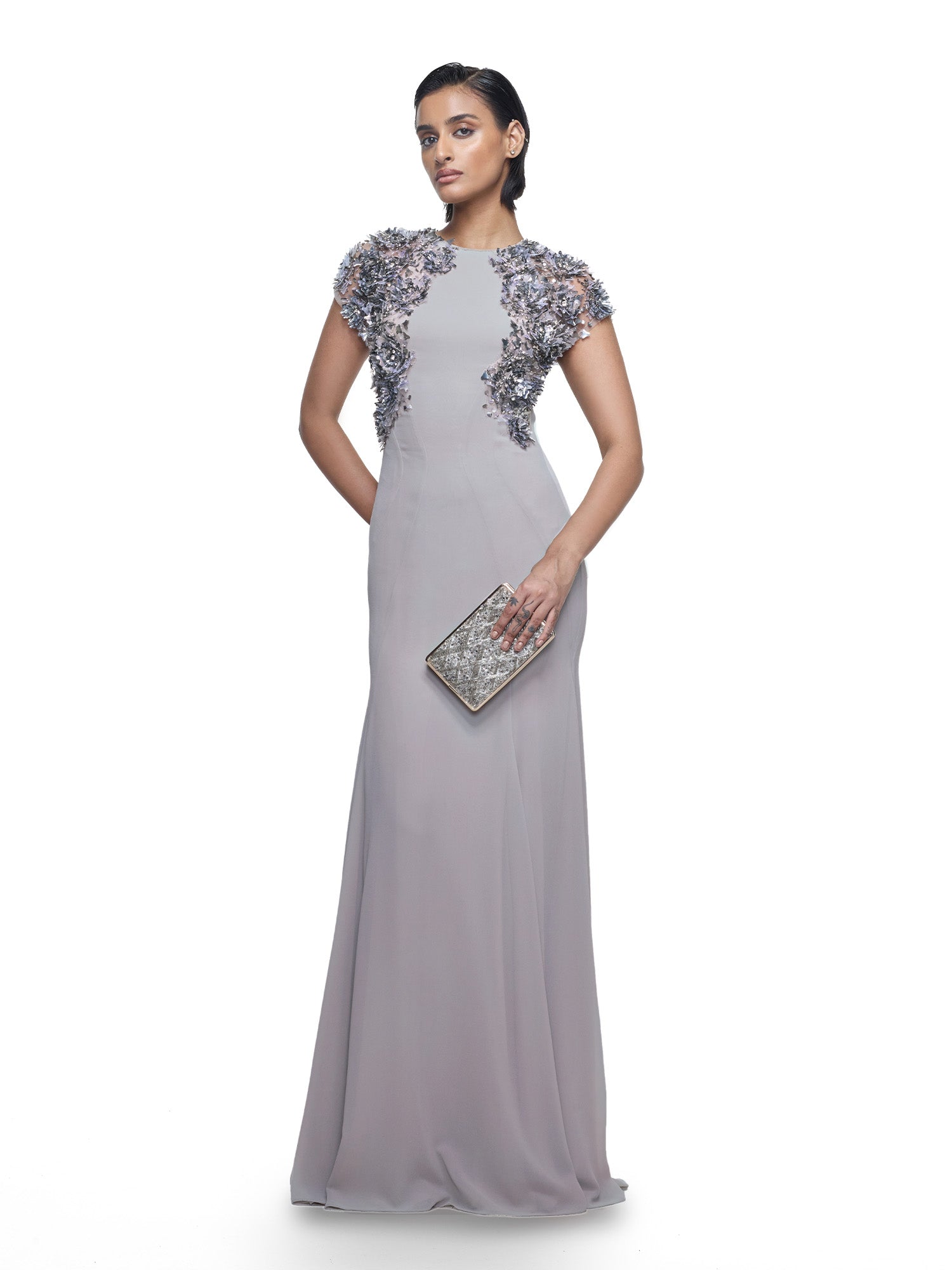 Sleek Dress With Embellished Sleeves