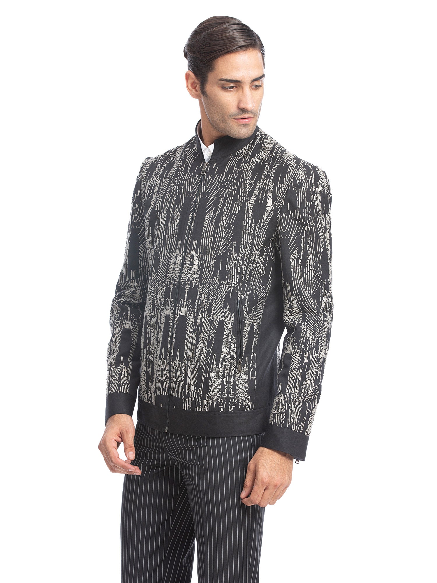 Black Embroidered Bomber Jacket