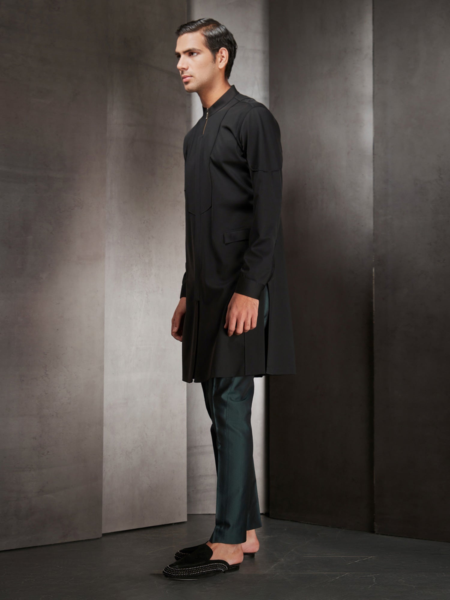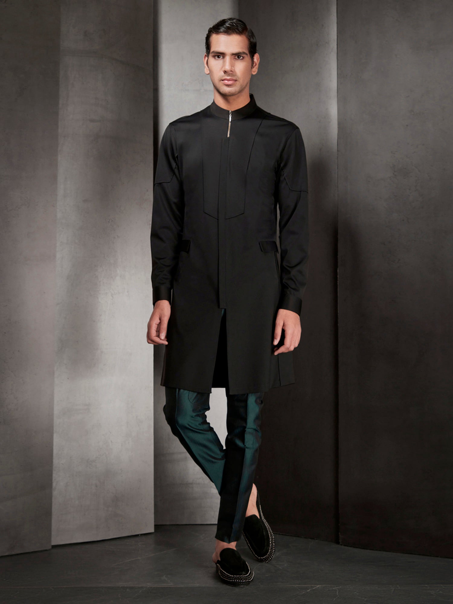 Black Zipper Style Short Kurta