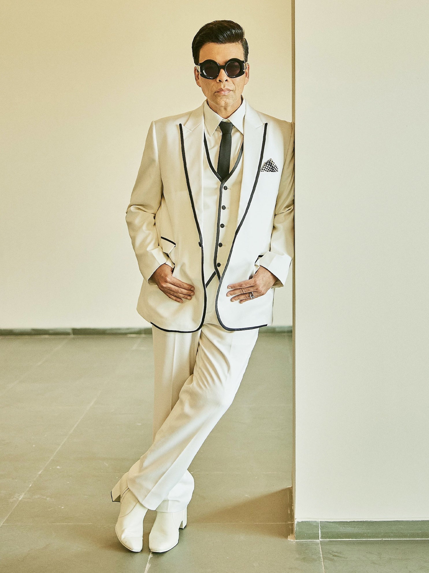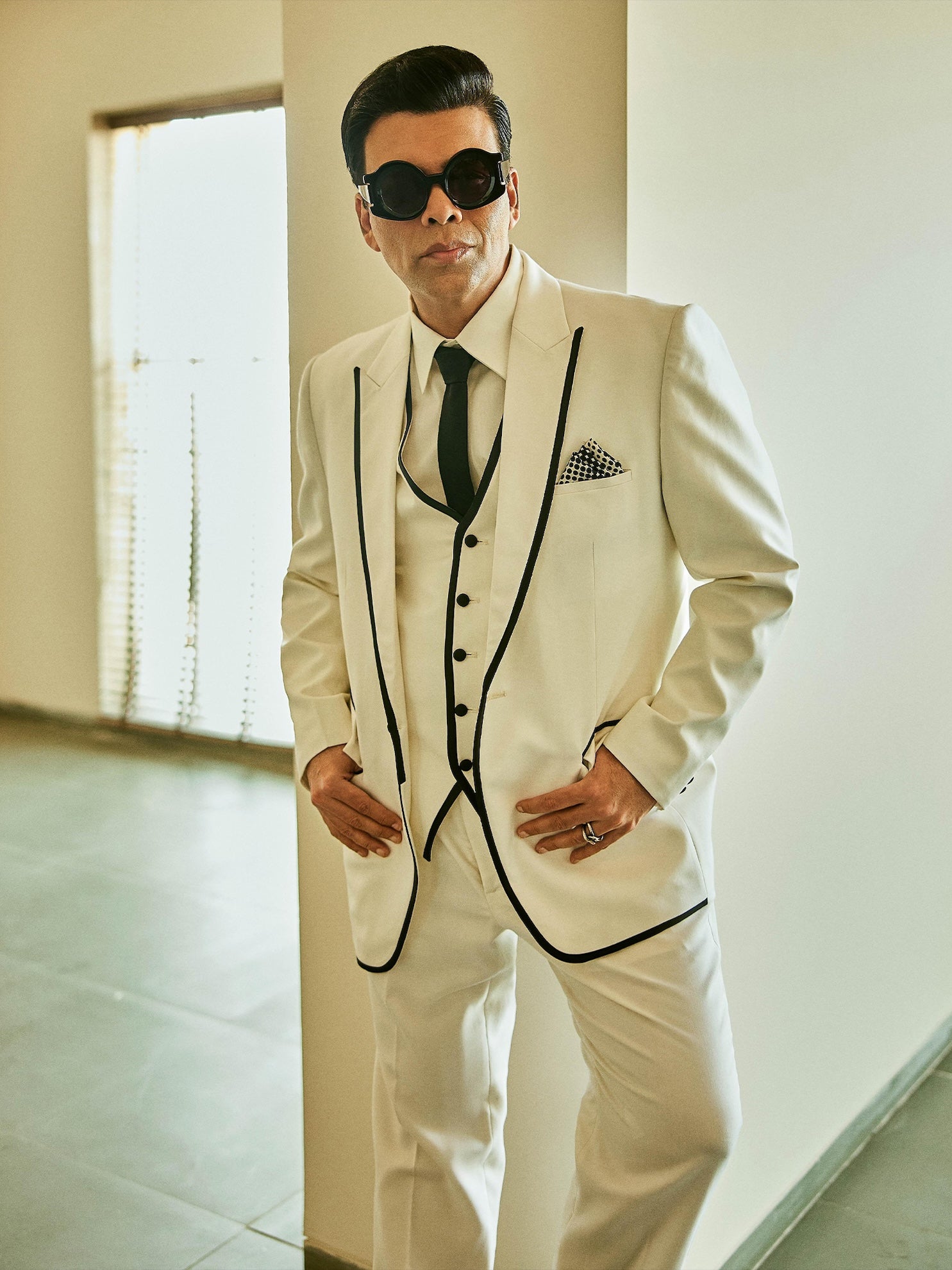 Karan Johar In Ebony-Edged Frost Tuxedo
