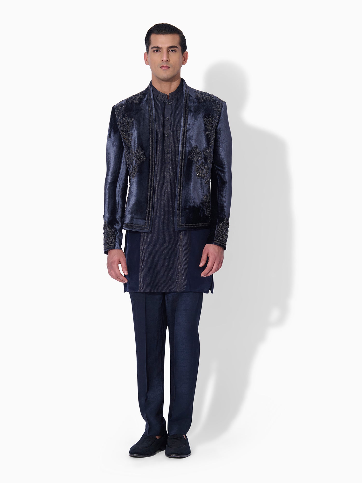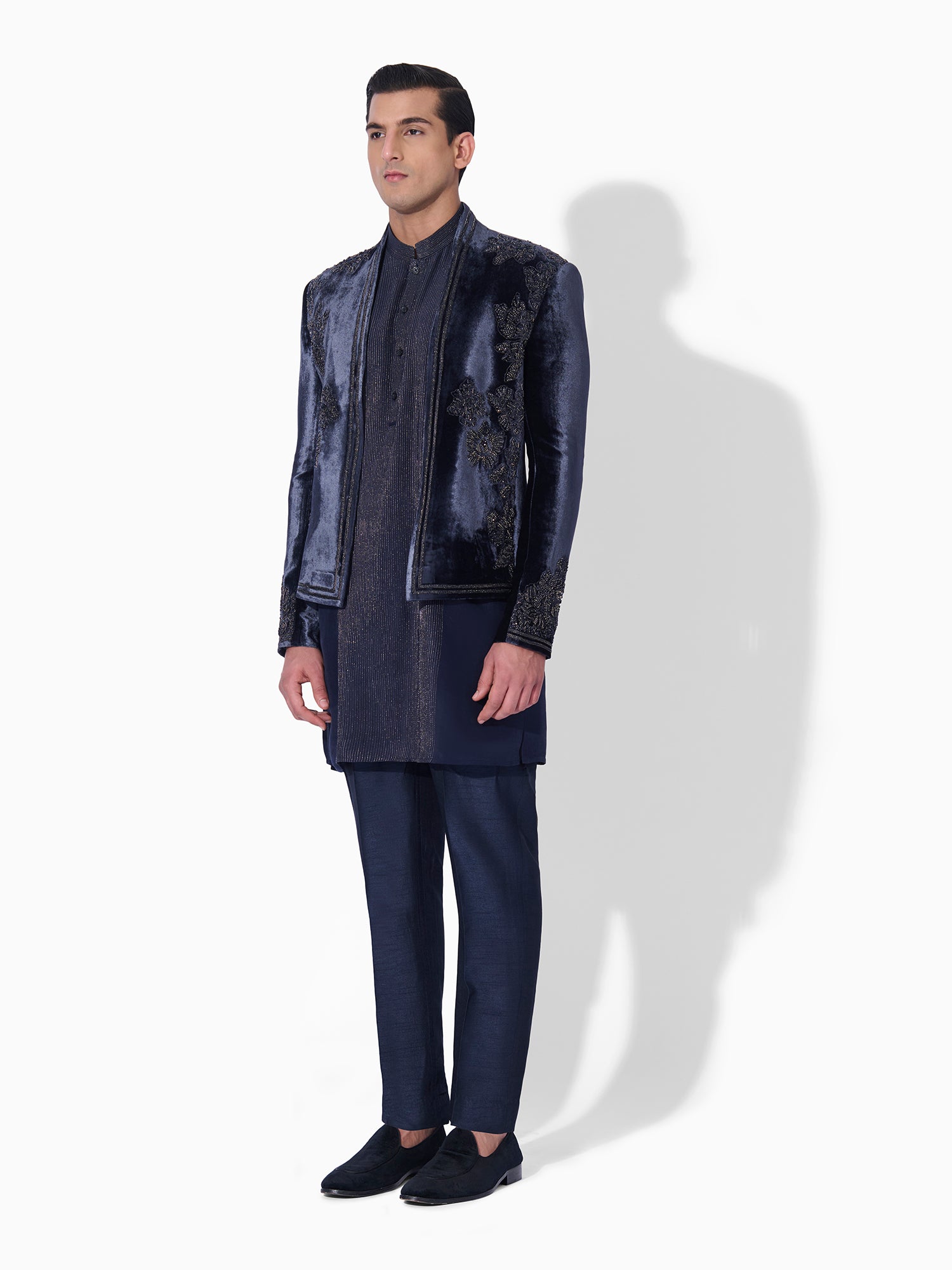 French Navy Textured Bandhgala Set