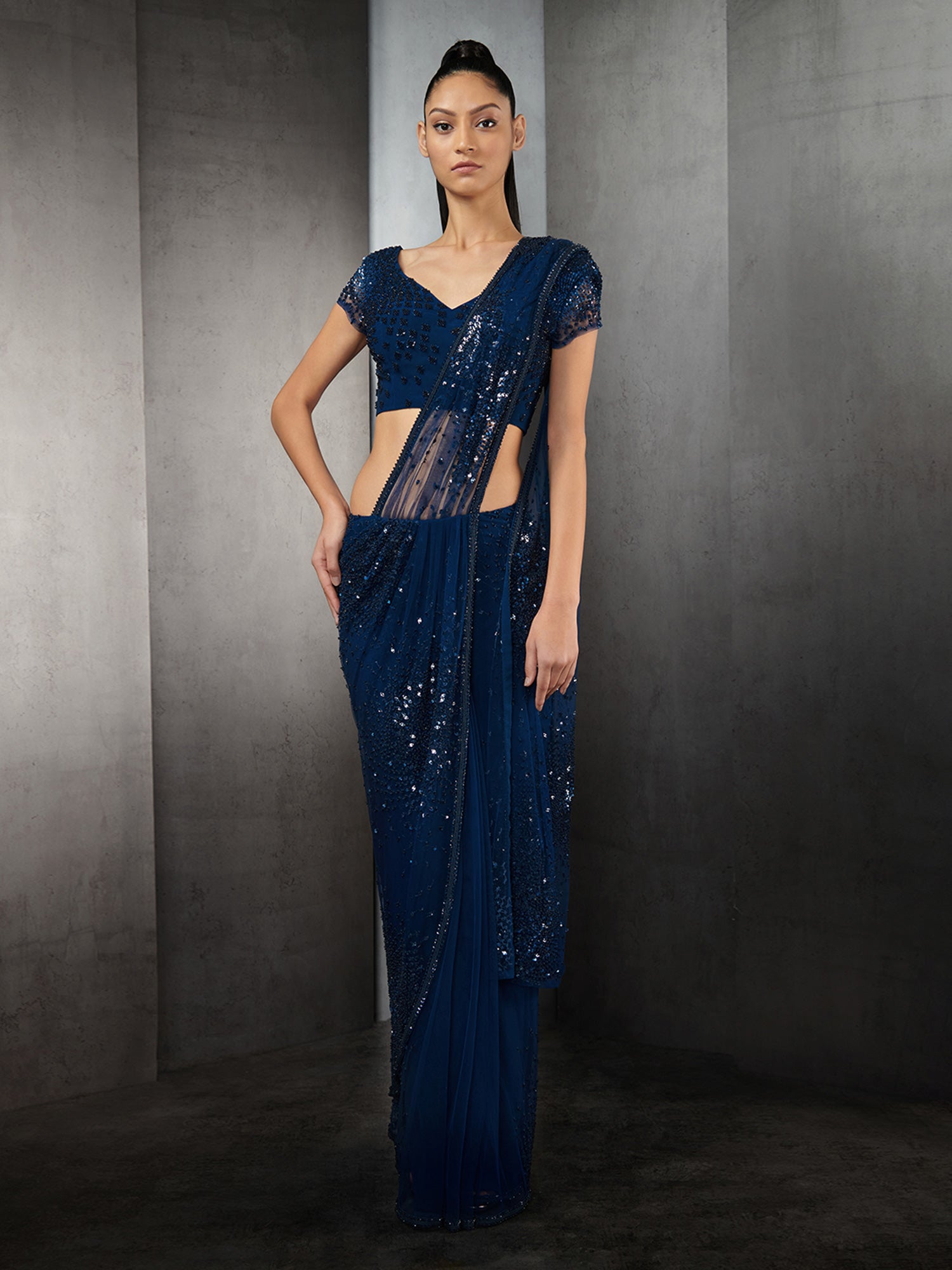 Pre Stitched Sequin Crystal Beaded Embroidered Saree