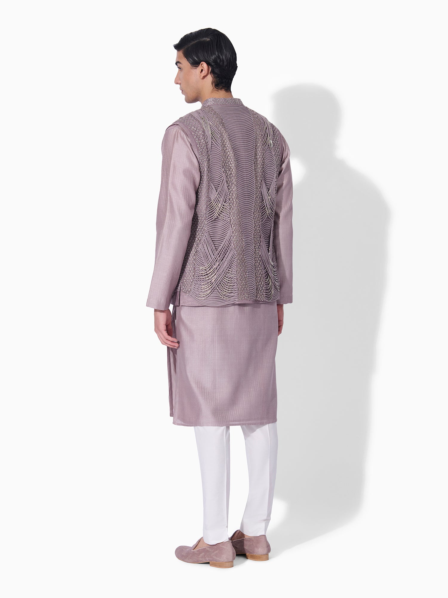 Rose Steel Embroidered Open-Front Bundi Set